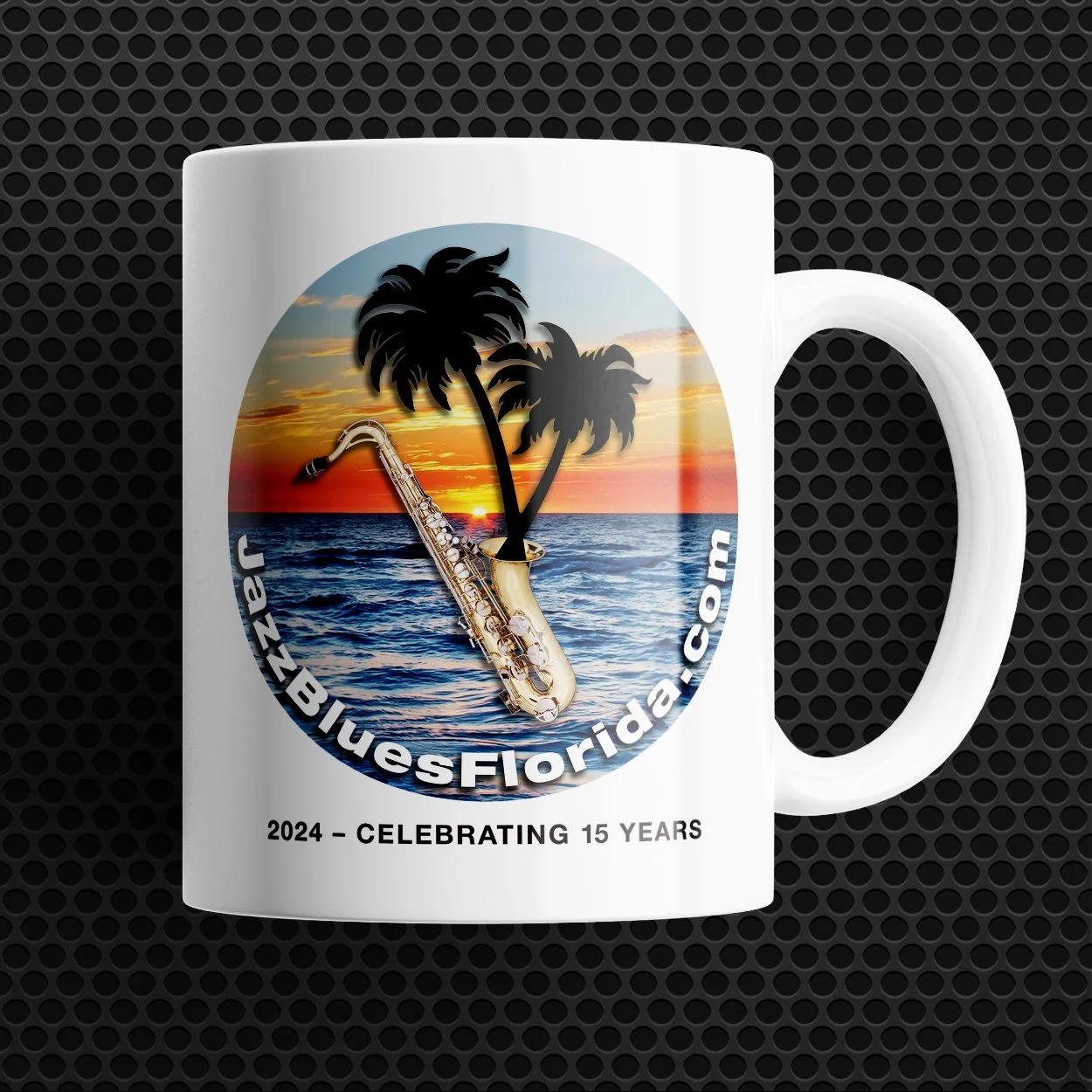 Help up mark 15 years of fostering Florida’s live jazz and blues scene with this amazing super-cool JazzBluesFlorida coffee mug! Printed on both sides.